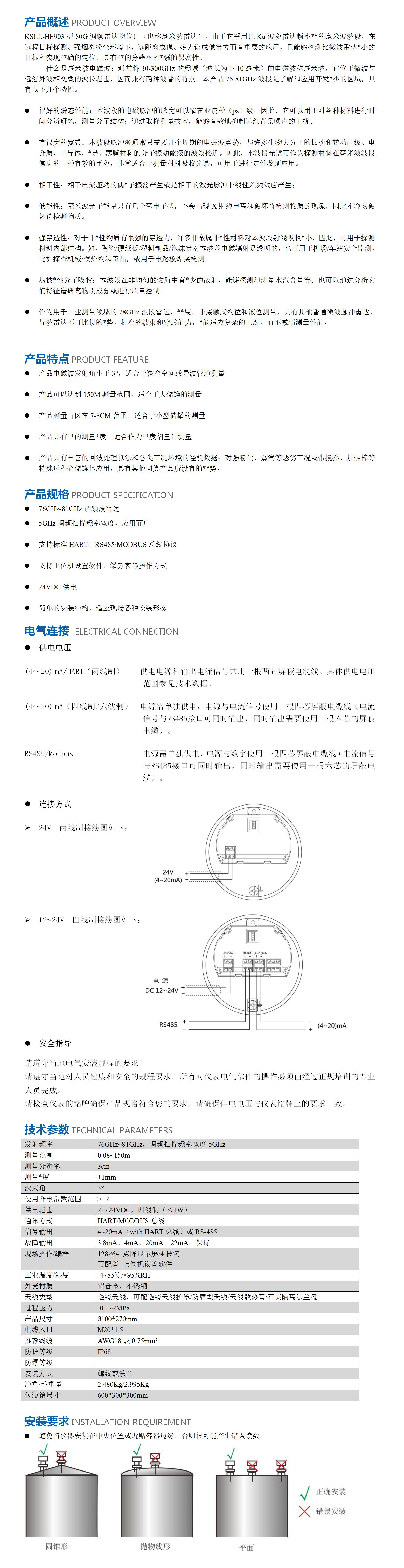 KSLL-H101型 80G調頻雷達物位計