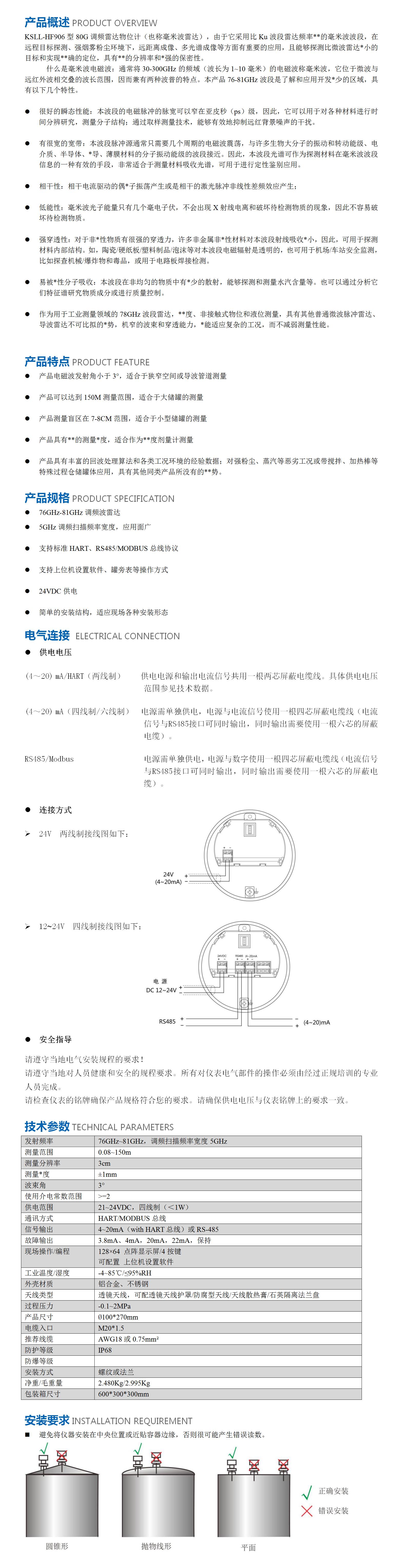 KSLL-HF906型 80G調頻雷達物位計